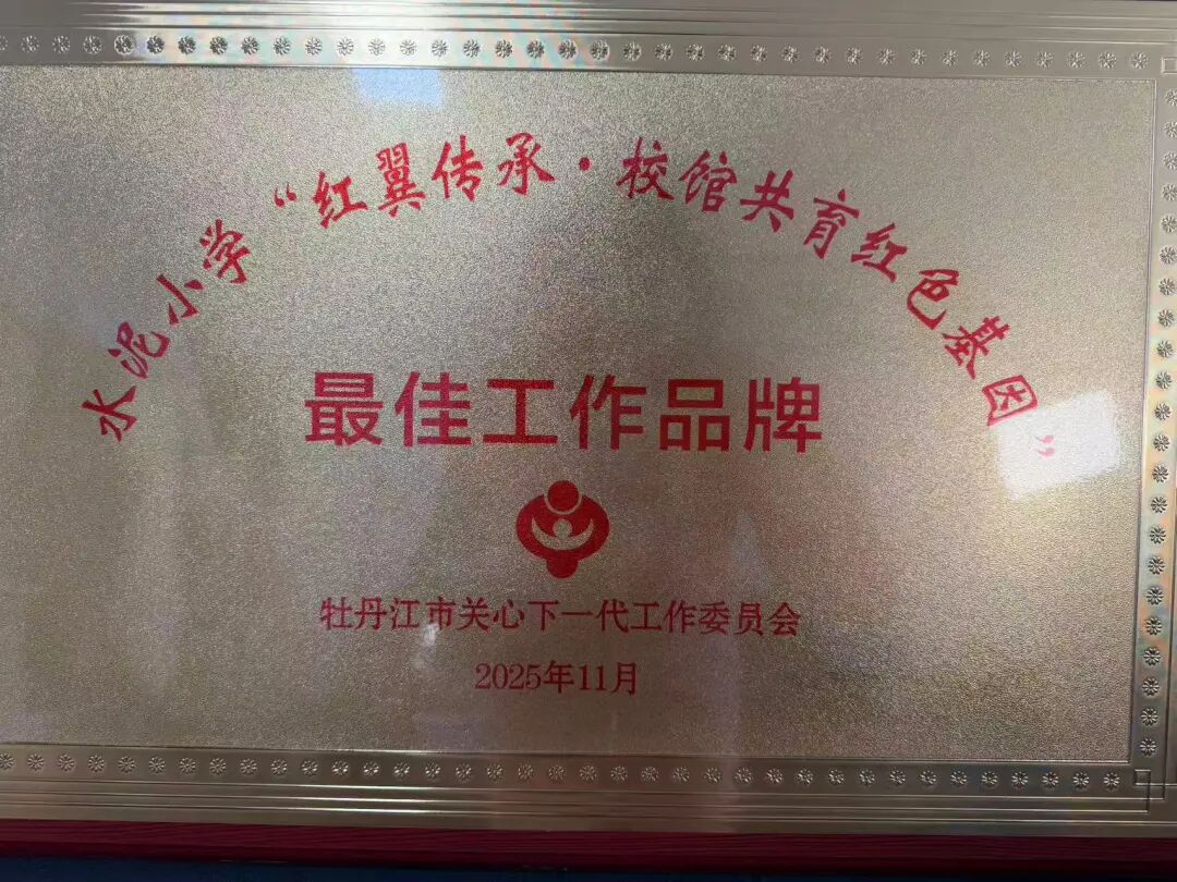 此次获评牡丹江市关心下一代“最佳工作品牌”,是荣誉,更是新的起点。水泥小学将珍惜这份沉甸甸的荣誉,再接再厉,持续深化校馆合作内涵,创新红色教育形式与载体,不断丰富“红翼传承”品牌价值,让红色基因在青少年心中深深扎根,为培养有理想、有担当、能担当民族复兴大任的新时代好少年不懈奋斗,为推动关心下一代工作高质量发展贡献更多水泥小学力量!