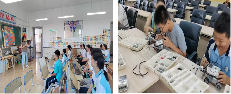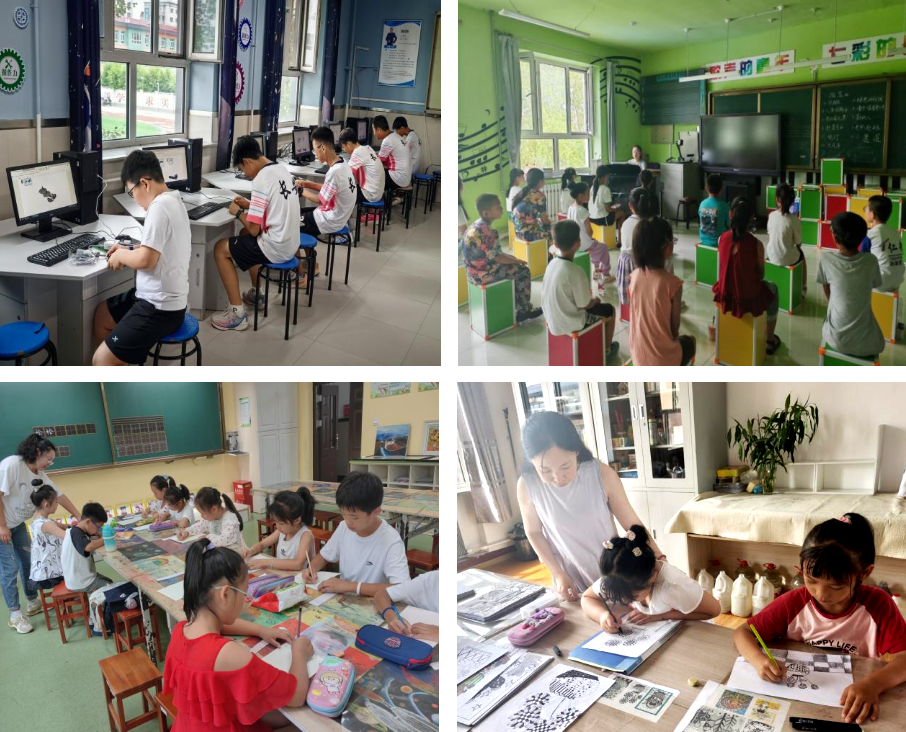 学校自主培训是此次活动的重要组成部分,市区内共34所中小学校结合自身特色与师资优势,深度融合体育、艺术、科技多元领域,开设近百个项目,为孩子们打造了丰富多样的课程。艺术绽放板块里,创意美术课上,孩子们用素描勾勒轮廓、用水彩晕染色彩,在国画、儿童画等创作中释放想象力;文化传承板块中,非遗课堂的剪纸、陶艺体验,让孩子们近距离感受传统文化的魅力;墨韵书香课上,硬笔的工整、软笔的洒脱,让“写好中国字”的信念深植心间;体育赋能课程里,篮球、排球等基础体能训练增强了学生的体质;数智信息课程中,少儿编程、创客机器人、趣味实验等,激发了孩子们的科学兴趣与创新思维。
